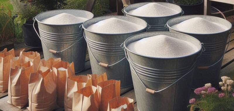 Ga naar je vrijgemaakte bodem en verdeel emmer 1 over de volledige oppervlakte tot die leeg is. Door het toevoegen van zand kan je perfect zien waar je al wel/niet geweest bent met strooien, alsook de vogels gaan minder snel van je dure zaden komen smullen. Dit herhaal je met de overige 3 emmers tot je overal evenveel zand-zaadmix hebt gestrooid.