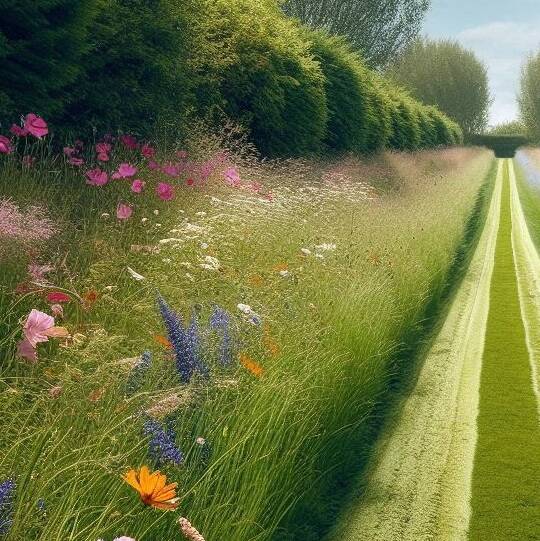 Als ik snel van de ene naar de andere kant van mijn tuin wil dwars door een bloemenweide, dat loopt veel te stroef. Zelf werk ik dus met bloemenweides als eilanden in een bloemrijk gazon. Ik leg het enkel aan op plekken waar ik zelden in mijn grastapijt overheen loop. De routes die ik neem over het gras heen naar het tuinhuis, mijn serre, het zonnebed, enz. die beheer ik als bloemrijk gazon. Dit doe ik ook langs alle boorden en zijkanten van bloemperken, verhardingen of langs hagen. Het ziet er esthetisch ook veel netter uit, wat rust brengt in je hoofd (en dan spreek ik vooral voor mezelf). Maai je gefaceerd, dan kan je telkens een ander eiland maaien. Echt, een aanrader!